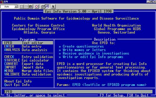 Este un set de programe pentru analize statistice, orientat spre domeniul medical (Epidemiology Information - versiunea 5.00 - Aprilie 1990).