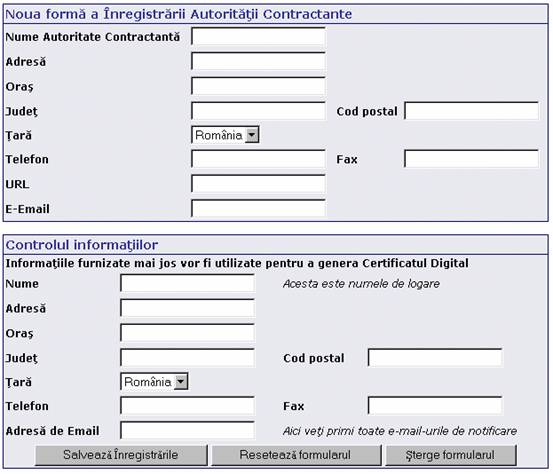 Pe baza acestor date certificatul dumneavoastra va fi creat. Toate campurile sunt obligatorii. Asigurati-va ca adresa de email este valida deoarece toate comunicatiile intre dumneavoastra si aplicatia E-Procurement se vor baza pe aceasta.