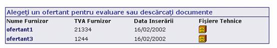 Apasand pe icoana de culoare galbena, sistemul va descarca documentele economice corespunzatoare fiecarui ofertant. In cazul in care ofertantul a prezentat numai documente tehnice, atunci vor fi descarcate numai acestea.