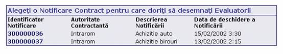 Apasand campul "Notice ID", care este de fapt un link, sistemul va va prezenta editarea principala pentru desemnarea Administratorilor Evaluatori.