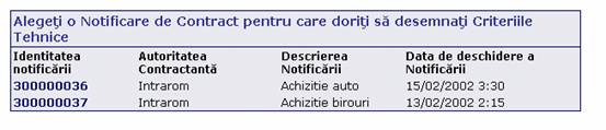 Apasand pe link-ul " Notificari Contractuale (Contract Notice)" veti avea trei optiuni: