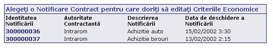 Daca alegeti editarea unei Notificari Contractuale (Contract Notice) ramase in asteptare, vi se va prezenta o lista cu toate notificarile contractuale ramase in asteptare.