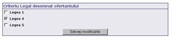 De aici se pot administra Criteriile Legale. Accesand o descriere din cadrul de jos se pot completa valorile din cadrul de sus. Acolo se pot edita criteriile si apoi apasati "Actualizare", pentru a le salva, sau "Stergeti", pentru a sterge complet inregistrarea respectiva.