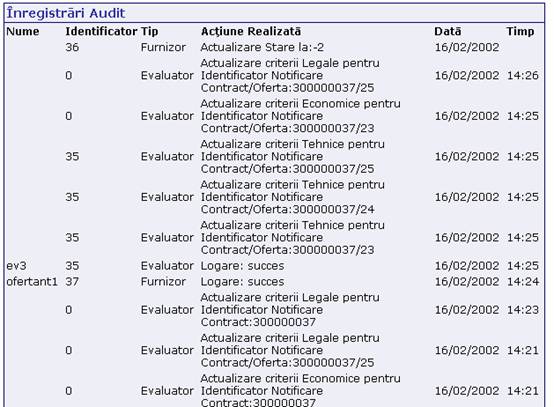 Apasand acest link vor aparea persoanele conectate la aplicatia E-Procurement in ordine invers cronologica.
