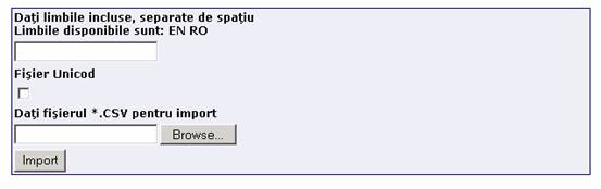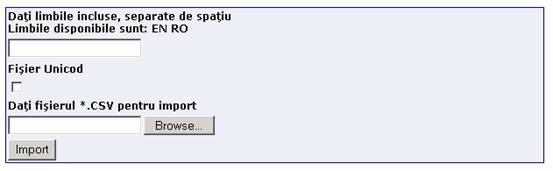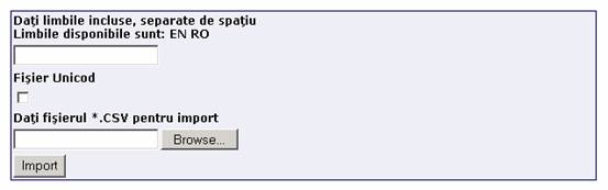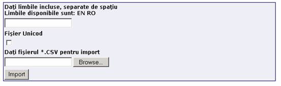 In partea de sus a paginii exista un link numit "Import din fisierul CSV". Acesta se utilizeaza pentru a insera noi inregistrari dintr-un fisier text.