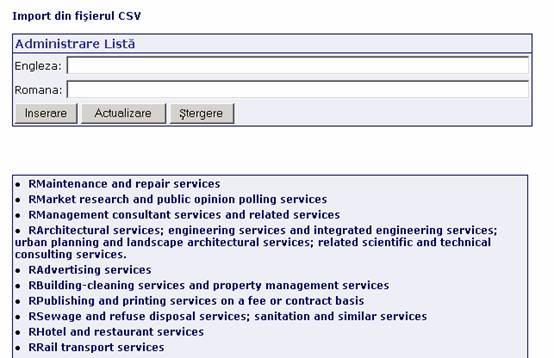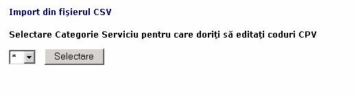 De aici se pot administra codurile CPV. La inceput trebuie sa selectati o categorie pentru a vizualiza inregistrarile.