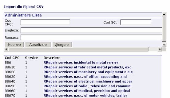 De aici puteti administra categoriile de servicii pentru codurile CPC.