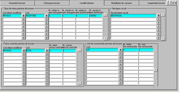 Fig. 4. Ecran Tipuri Lucrari - Tab ,Conditii tehnice'- lucrarea "ATRIBUIRE NR SUPL ACCES 64+"