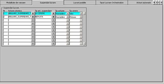 Fig. 6. Ecran Tipuri Lucrari - Tab ,Suspendari lucrare' - lucrarea "DESF AUDIO 10 KHZ"