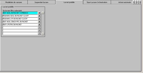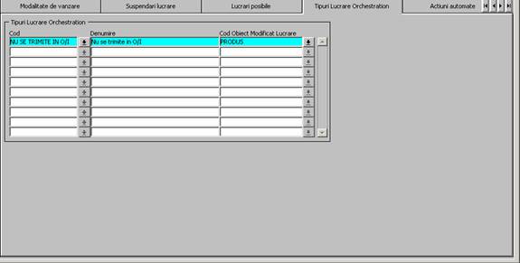 Fig. 8. Ecran Tipuri Lucrari - Tab ,Tip Lucrare Orchestration'-lucrarea "INST PACHET VOCE/CN START O/I"