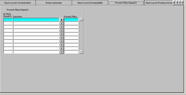 Fig. 11. Ecran Tipuri Lucrari - Tab ,Procent Plata Dispatch'