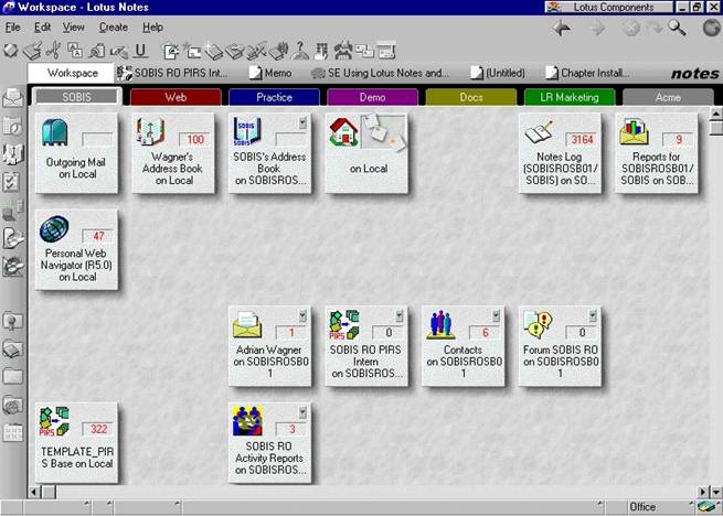 Workspace - pagina de lucru - este mediul din care se lanseaza in executie aplicatiile Lotus Notes. Workspace-ul este organizat in tab-uri, pentru o mai buna structurare a informatiilor.