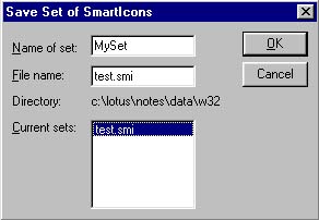 Iconurile din partea dreapta formeaza setul curent de SmartIcons. Numele acestora se afla imediat langa ele. Initial, daca dati click pe lista derulanta ce contine numele Universal, observati ca nu sunt alte seturi definite. Daca doriti sa modificati setul curent, executati pasul urmator. Daca doriti sa va creati propriul set, dati click pe Save Set, asa ca in figura 1.7. Introduceti numele noului set si numele fisierului in care va fi stocat, impreuna cu extensia SMI. Cand asi terminat, dati click pe OK.