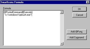 Uneori este utila prezenta unui buton care sa execute operatii care nu se pot efectua cu o comanda de meniu Notes. Sa presupunem doriti sa lansati in executie o aplicatie Windows din interiorul Notes. In continuare puteti vedea cum se creaza un buton care lanseaza in executie aplicatia Windows Paint prezenta in sistemul de operare Windows 95/98. Analog, se poate proceda asa cu orice alta aplicatie. De asemenea, se pot scrie macrouri (succesiune de comenzi) folosind Formula Language Lotus Notes pentru a executa operatii oricat de complexe. Aceasta insa, nu face obiectul prezentului curs de utilizare Lotus Notes.