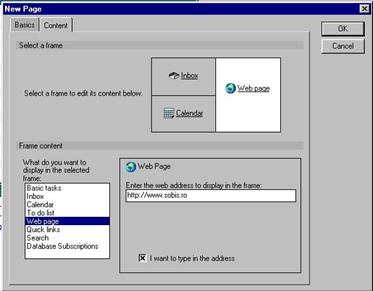 ferestrei de dialog. Puteti opta pentru continut predefinit sau puteti