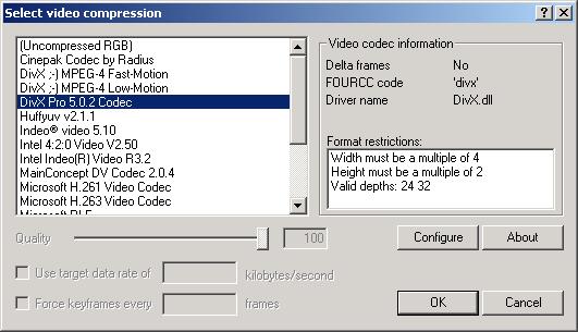 selectionezi codecul DivX Pro 5.02 (sau versiune mai noua daca ai), apoi click pe Configure.
