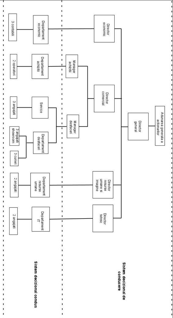 Organigrama(vezi fig.1) companiei este impartita in doua nivele sisteme decizionale, cel de conducere si cel condus. Fiecare sistem decizional are atributii si responsabilitati, acestea vor fi analizate pe larg la capitolele 1.2.2 si 1.2.3.