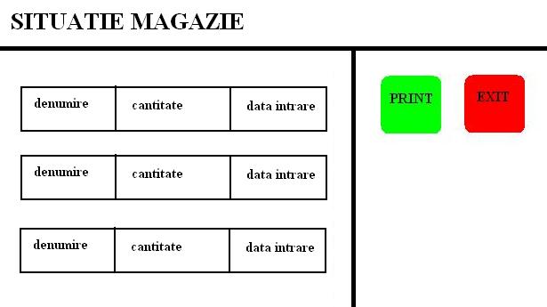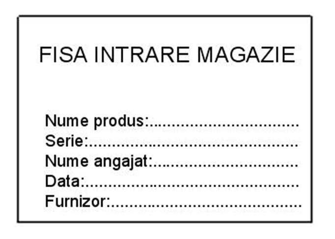 Fisa intrare magazie - document intern societatii care tine evidenta intrarii noilor produse in magazie. Pe document se gasesc datele produsului, datele persoanei care la livrat si datele furnizorului.