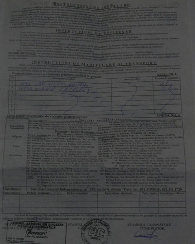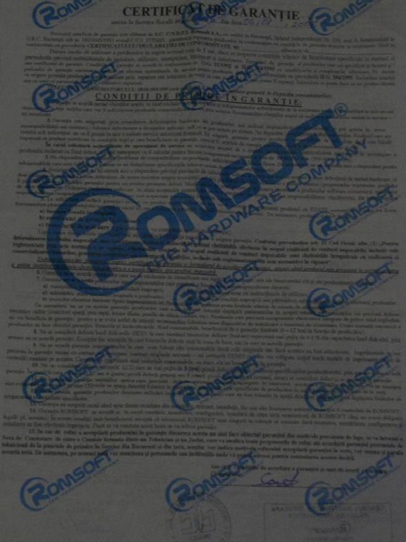Garantie - document ce contine instructiuni de utilizare, manipulare si transport despre produs. Este necesar in cazul in care produsul se deterioreaza si se doreste repararea/inlocuirea acestu`ia in conditile prevazute de contract.