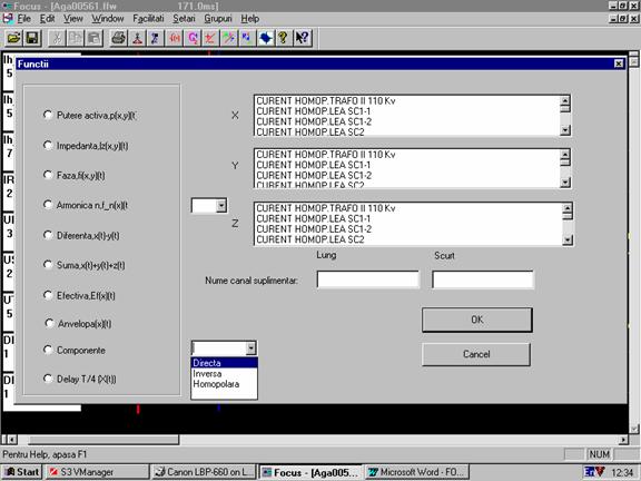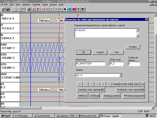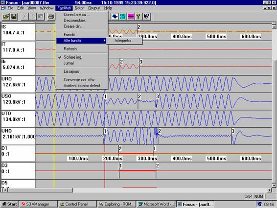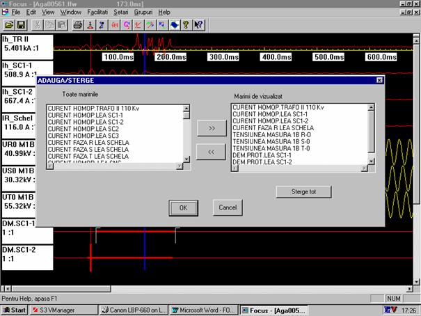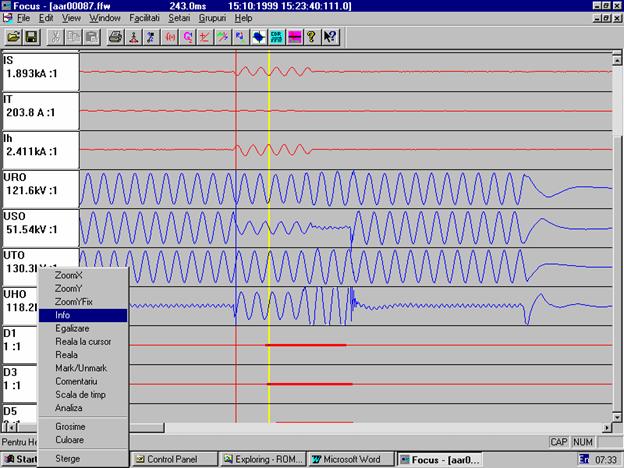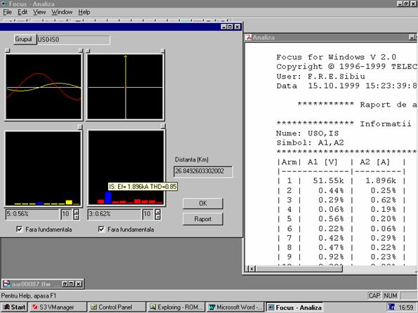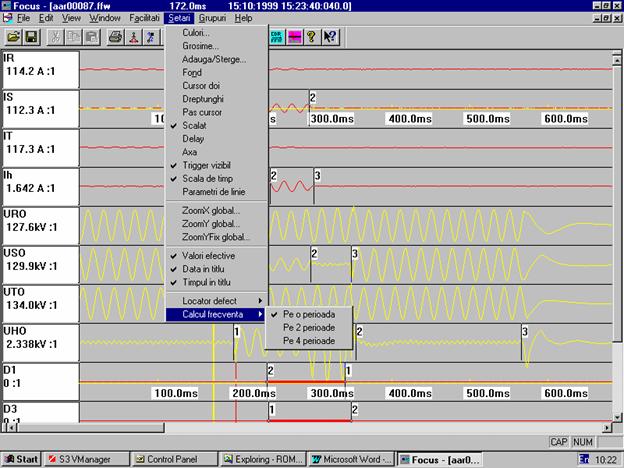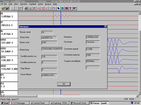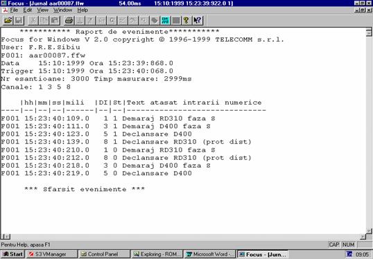 Programul Focus permite vizualizarea intr-un mod comod si convenabil a acestor secvente de valori pentru a se putea trage concluzii asupra cauzelor, dimensiunilor si consecintelor perturbatilor aparute.
