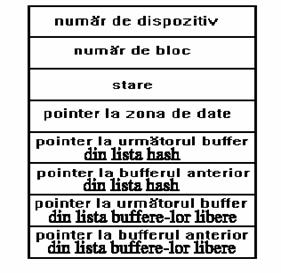 Antetul mai contine si doua seturi de pointeri, folositi de algoritmii de alocare a buffere-lor pentru a mentine intreaga structura a sistemului de buffere.