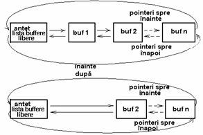 Lista buffere-lor libere este o lista circulara dublu inlantuita de buffere care are un antet de buffer special pentru a-i marca inceputul si sfarsitul (fig 2).