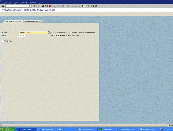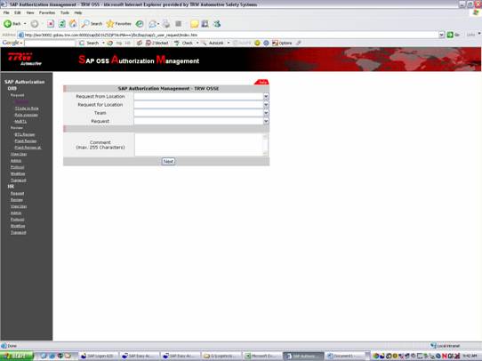 In fereastra de mai sus (figura 1) este prezentata cererea unui user SAP in cadrul firmei TRW, fiecare user avand autorizatie la anumite tranzactii in functie de departamentul de care apartine.