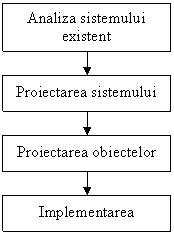 Etapele de realizare a sistemului informatic conform acestei metodologii sunt: analiza, proiectarea sistemului, proiectarea obiectelor si implementarea.