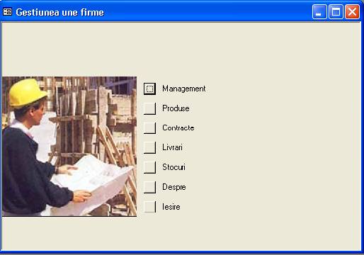 Panoul de comutare al programului a fost creat cu ajutorul generatorului de meniuri. La selectarea submeniurilor se activeaza forme (ferestre) sau proceduri. Formele au fost create cu ajotorul generatorului de forme.