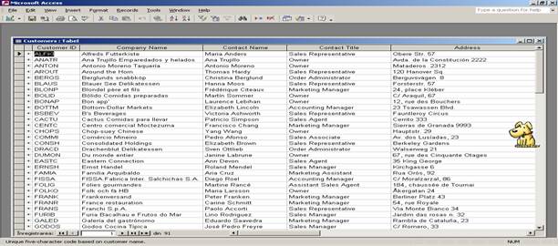 Fiecare rand al tabelului corespunde unei inregistrari. Fiecare inregistrare contine mai multe campuri de date, care se pot vizualiza folosind bara orizontala de defilare (stanga-dreapta).