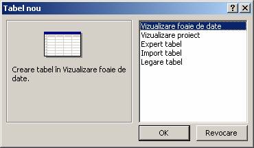 Pentru deschiderea unui tabel existent, acesta este selectat si apoi se executa clic pe butonul Open. Rezultatul acestei actiuni este aparitia tabelului intr-o fereastra proprie