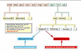 retea. Pentru a usura retinerea adresei se foloseste si un nume- cunoscut ca nume de domeniu numecalculator.grup.organizatie.