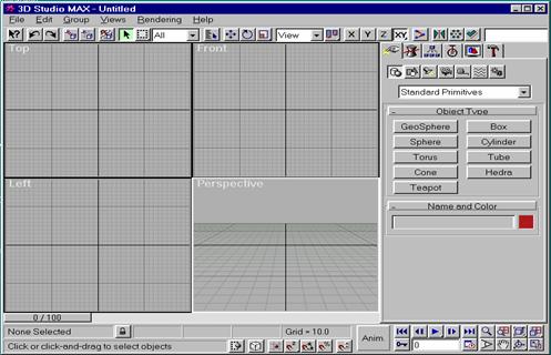 3DStudio MAX are o interfata unica pentru crearea obiectelor si animarea lor. Ca si alte aplicatii WINDOWS 3D STUDIO ofera un spatiu de lucru, butoane, un panou de comanda, o bara de stare si un sistem de control al desfasurarii deplasarilor in timp.
