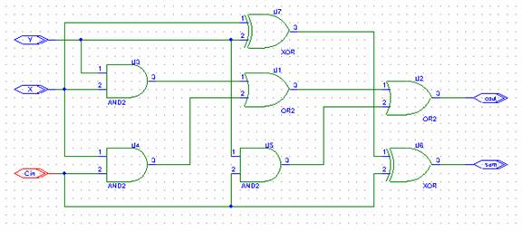Pentru a atinge scopul declarat al lucrarii vom simula un sumator de 1 bit cu schema din figura I.1 .