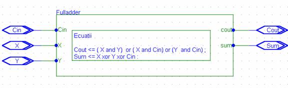 O reprezentare grafica a modelului descris de entitatea 'FullAdder' si de arhitectura 'Ecuatii' este prezentata in figura I.2.