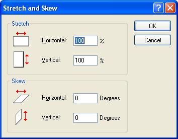 Dati, apoi, un clic pe instrumentul 'selection' si incadrati desenul intr-un dreptunghi cu linii punctate. Selectati Stretch/Skew din meniul Image si intindeti figura pe orizontala, cu un anumit procent.