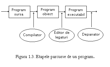 Cu dreptunghiuri s-au simbolizat etapele prin care trece programul utilizator, iar prin elipse componentele (programe deja existente) care contribuie la transformarea succesiva a programului utilizator.