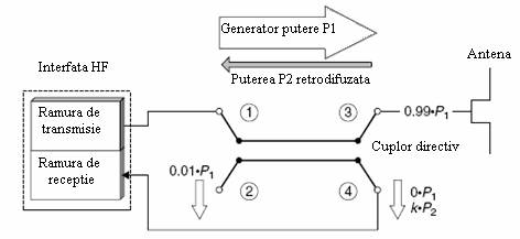 Puterea transmisa de la antena prin intermediul micilor ajustari este decuplata la portul 4 ca putere inversa.Daca cuplorul directiv are o pierdere de cuplaj buna, chiar o minima neconcordanta a transmisiei antenei(prin influentele mediului) este suficienta pentru cresterea puterii inverse la amplitudinea puterii reflectate a transponderului.Cu toate acestea, utilizarea unui cuplor directiv confera o imbunatatire semnificativa in comparatie cu nivelul coeficientului obtinut prin conectarea directa a modulului de iesire a transmitatorului cu intrarea receptorului.