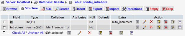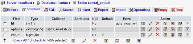 Sondaj - rezultatele voturilor, adaugare de noi optiuni, modificare intrebare, resetare voturi
