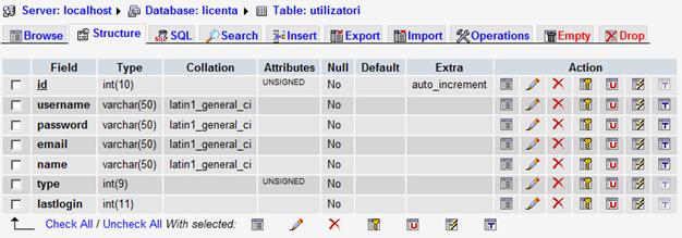 Utilizatori - vizualizare utilzatori, stergere utilizatori, modificare parola