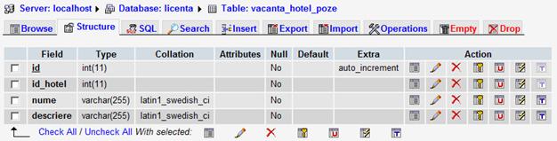 -id, id_tara, id_statiune, director, oferta, nume, email, telefon, situare, adresa, dotari_generale, dotari_camere, servicii, facilitati_copii, observatii, pret