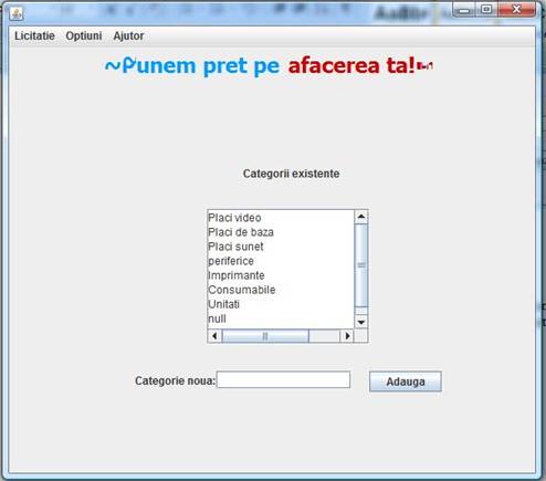 -adaugare categori,adaugare criteriu(tip),administare licitatii si useri