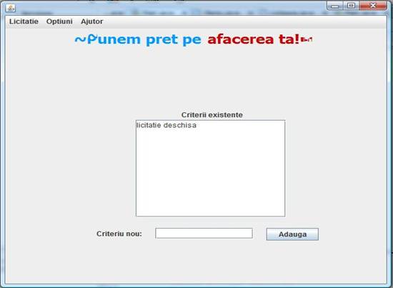 Adaugare criteriu ofera posibilitatea administratorului sa adauge tipuri de licitatii pe care utilizatorul sa le poate folosii