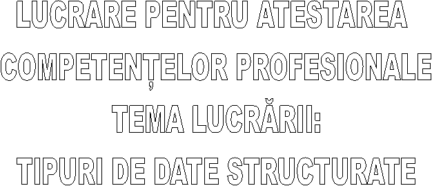 Tipuri de structura de date defineste apartenenta structurii de date la o anumita familie de structure carora le corespunde acelasi mod de organizare logica, acelasi model de reprezentare fizica si care pot fi supuse acelorasi operatii