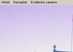 In coltul din stanga sus se poate observa meniul programului,ce este alcatuit din trei butoane principale si anume "Hotel","Receptie","Evidenta camere"!