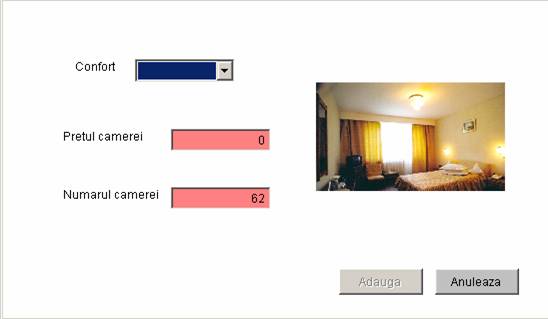 Avantajul acestei operatiuni este ca numarul camerei si pretul acesteia este introdus automat de catre program!Daca se doreste anularea operatiunii in curs,se apasa butonul Anuleaza.