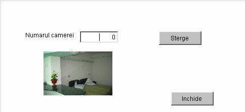 Utilizatorul va introduce numarul camerei ce se doreste a fi stearsa si va selecta butonul Stergere.Daca se doreste iesirea din aceasta fereastra,se va selecta butonul Inchide.