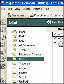 Din folderul Rules care exista implicit in structura Lotus Notes, apelam optiunea New Rule.