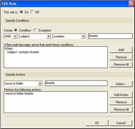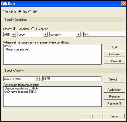 De asemenea, o alta regula (care poate da fiori pe sira spinarii) ar suna in felul urmator: Daca mesajul este de la sef, atunci muta mesajul in folderul SEF si modifica-i gradul de importanta (priority) astfel incat sa fie cel maxim posibil.