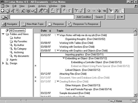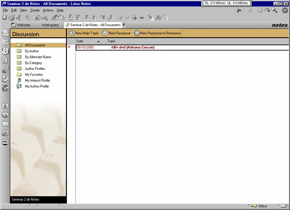 Daca va uitati in partea de sus a view-ului All Documents, veti observa trei butoane. Aceste trei butoane - New Main Topic, New Response si New Response to Response se aplica la toate bazele de date Notes.
